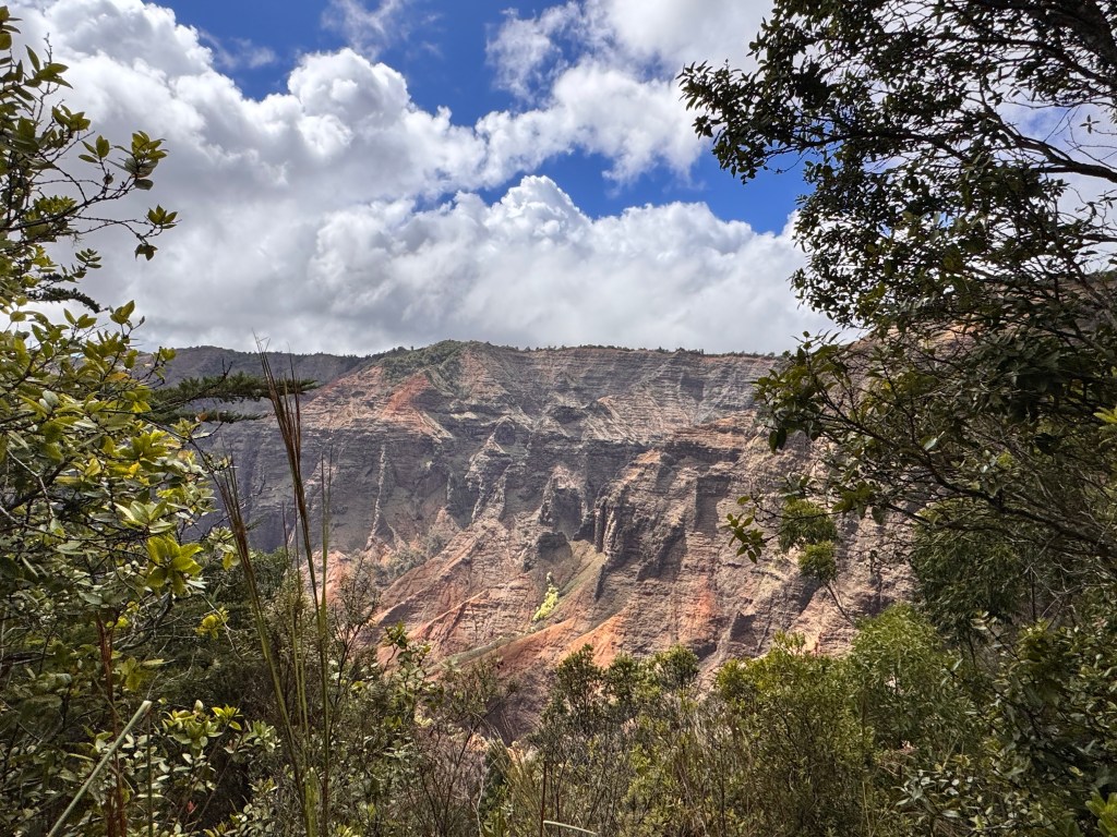 Driving up Waimea Canyon Drive, each turn feels like it reveals a new masterpiece. Sheer cliffs, rust-red ridges, and lush green valleys stretch out for miles. The colors shift as the sun moves- reds deepening, shadows carving out shapes, and patches of greenery softening the jagged rock. It’s dramatic yet peaceful, like nature showing off without even trying.
