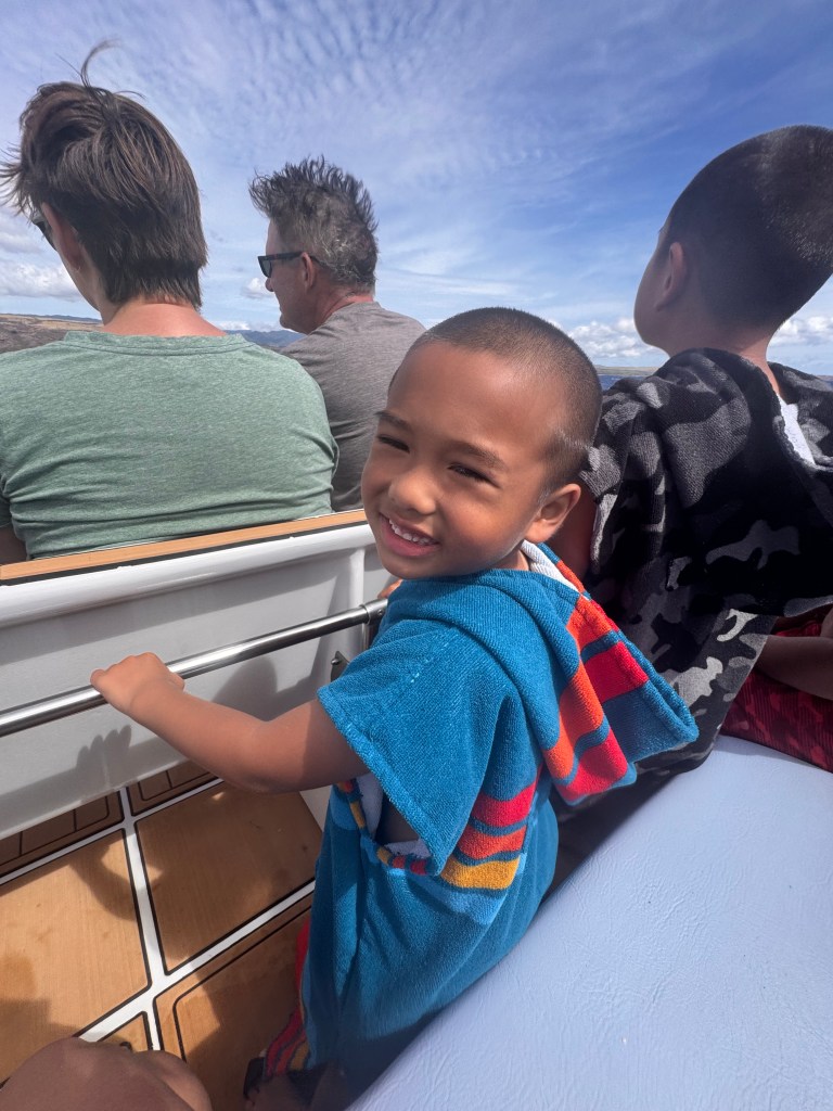One of the highlights of the tour was slipping into the water. The reefs here are alive with color, and while snorkeling we swam alongside Hawaiian green sea turtles (honu) gliding gracefully under the surface. Just when we thought it couldn’t get any better, a pod of spinner dolphins (nai‘a) appeared, leaping and twirling like they were putting on a show just for us. The water was so clear it felt like being inside an aquarium- only real, and better.