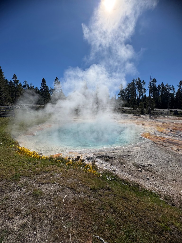 Seeing Old Faithful erupt in person was one of those bucket list moments that gave us chills. There’s something incredible about watching nature keep time better than we ever could. As the geyser shot into the sky, it felt like everyone around us held their breath. Moments like that make you feel small in the best way.
