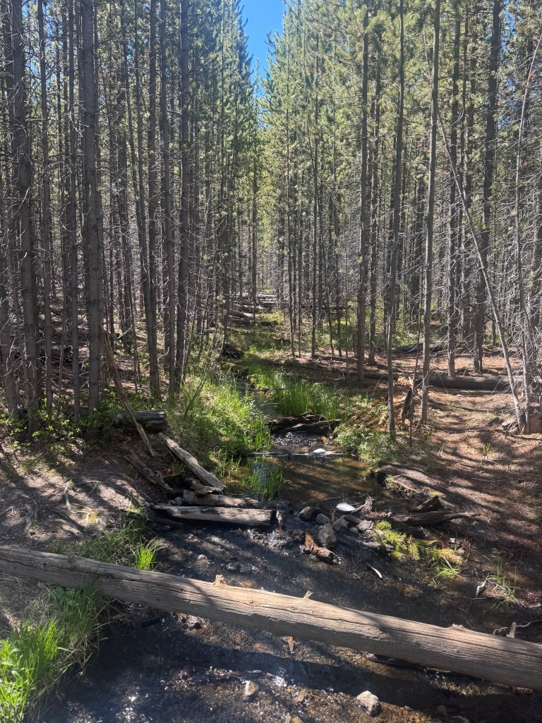 The trail was flat, easy, and peaceful, weaving through open forest with views of distant geysers steaming quietly in the background. Compared to the thunder of Ousel Falls, Fairy Falls wasn’t gushing or loud- it was gentle, cascading over the rock face in a steady, graceful way. And that simplicity made the moment feel even more serene.