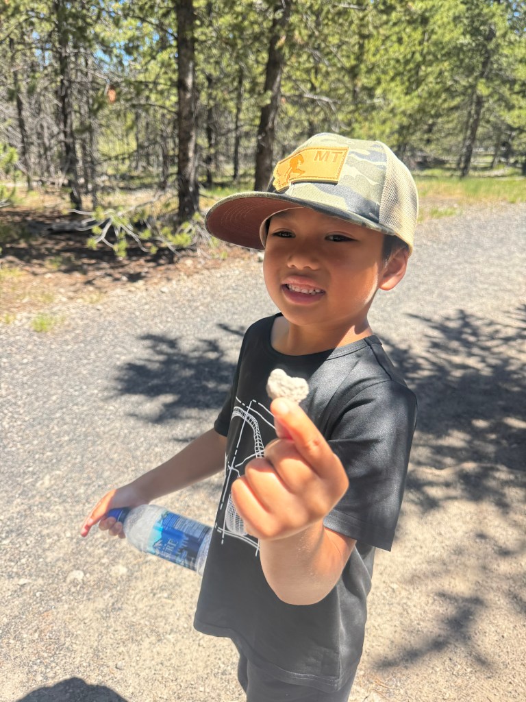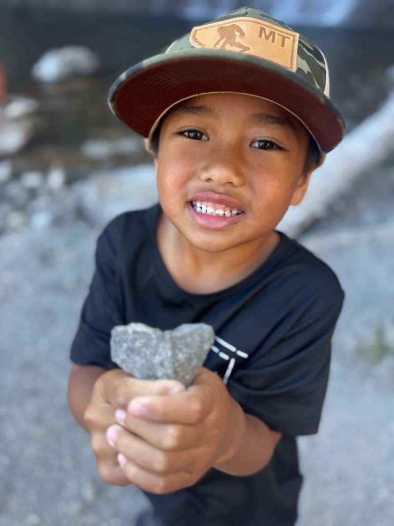 We found a few big rocks near the base and snacked, taking our time just sitting there, watching the water fall while Mai Boys looked for heart rocks and rocks to skip. It felt grounding in that calm, not a rush to the next thing, just being there, together.