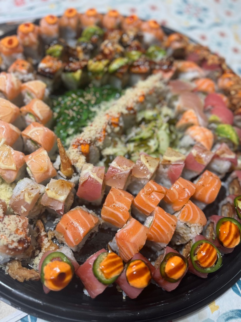 They included a nice variety- classic rolls, specialty rolls, and a good balance of cooked and raw options, which made it crowd-friendly. That’s important when you’re ordering for a group. Everyone found something they liked.
