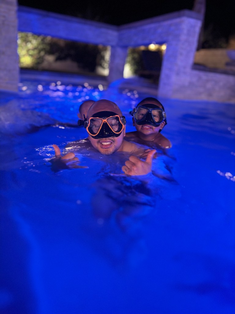 Mai Boys, especially Preston (we rented this house for his birthday week), had the time of their lives, swimming 8am-10pm every night. Despite the intense heat, we stayed cool thanks to the perfectly chilled house and the large poolside umbrellas that provided plenty of shade.